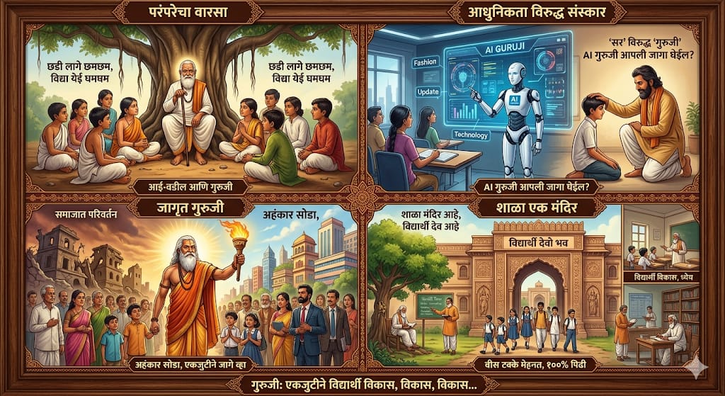 चला, पुन्हा एकदा 'गुरुजी'चे अस्तित्व सिद्ध करूया. लोप पावणारी संस्कृती आणि संस्कार पुन्हा रुजवण्यासाठी सज्ज होऊया. आता तुम्हाला तयार व्हावेच लागेल! कारणे सांगणे आणि पळवाटा शोधणे बंद करा. जर तुम्ही आता बदलला नाहीत, तर लक्षात ठेवा, येणारा काळ हा तंत्रज्ञानाचा आहे आणि तुमच्यात असलेली माया व भावना नसलेला कृत्रिम बुद्धिमत्तेचा 'AI गुरुजी' तुमची जागा घ्यायला मागेपुढे पाहणार नाही.