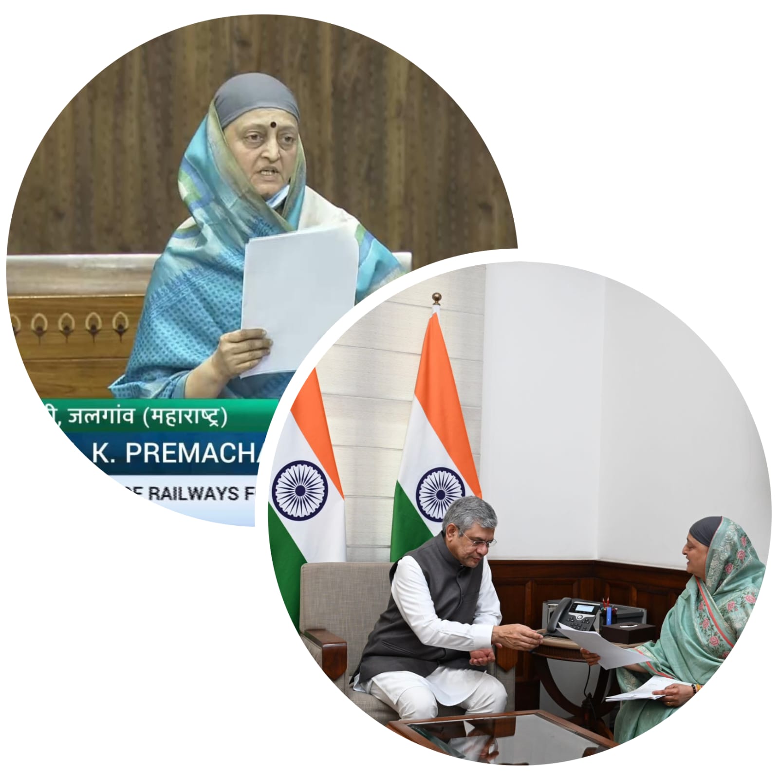 जळगाव लोकसभा मतदारसंघातील रेल्वेचे अनेक वर्षांपासूनचे प्रलंबित प्रश्न खासदार स्मिताताई वाघ यांनी संसदेत प्रभावीपणे मांडले.